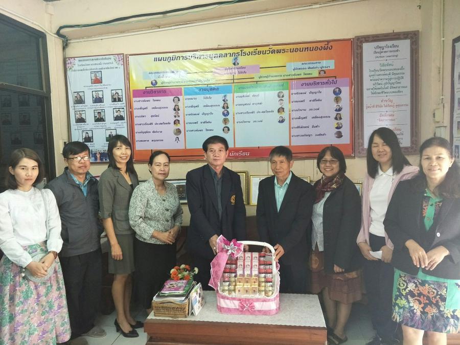คณะครูโรงเรียนวัดพระนอนหนองผึ้งมอบกระเช้าสวัสดีปีใหม่แก่ผู้อำนวยการโรงเรียน และเจ้าอาวาสวัดพระนอนหนองผึ้ง S:0